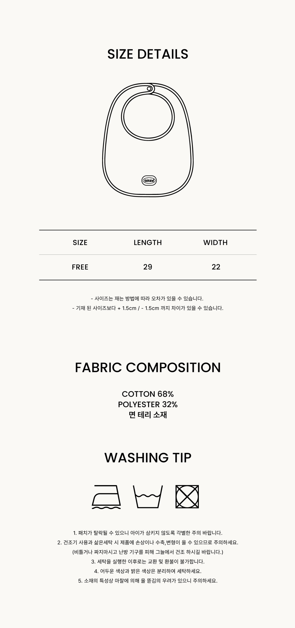 tétée 빕은 부드럽게 얼굴을 감싸줍니다.